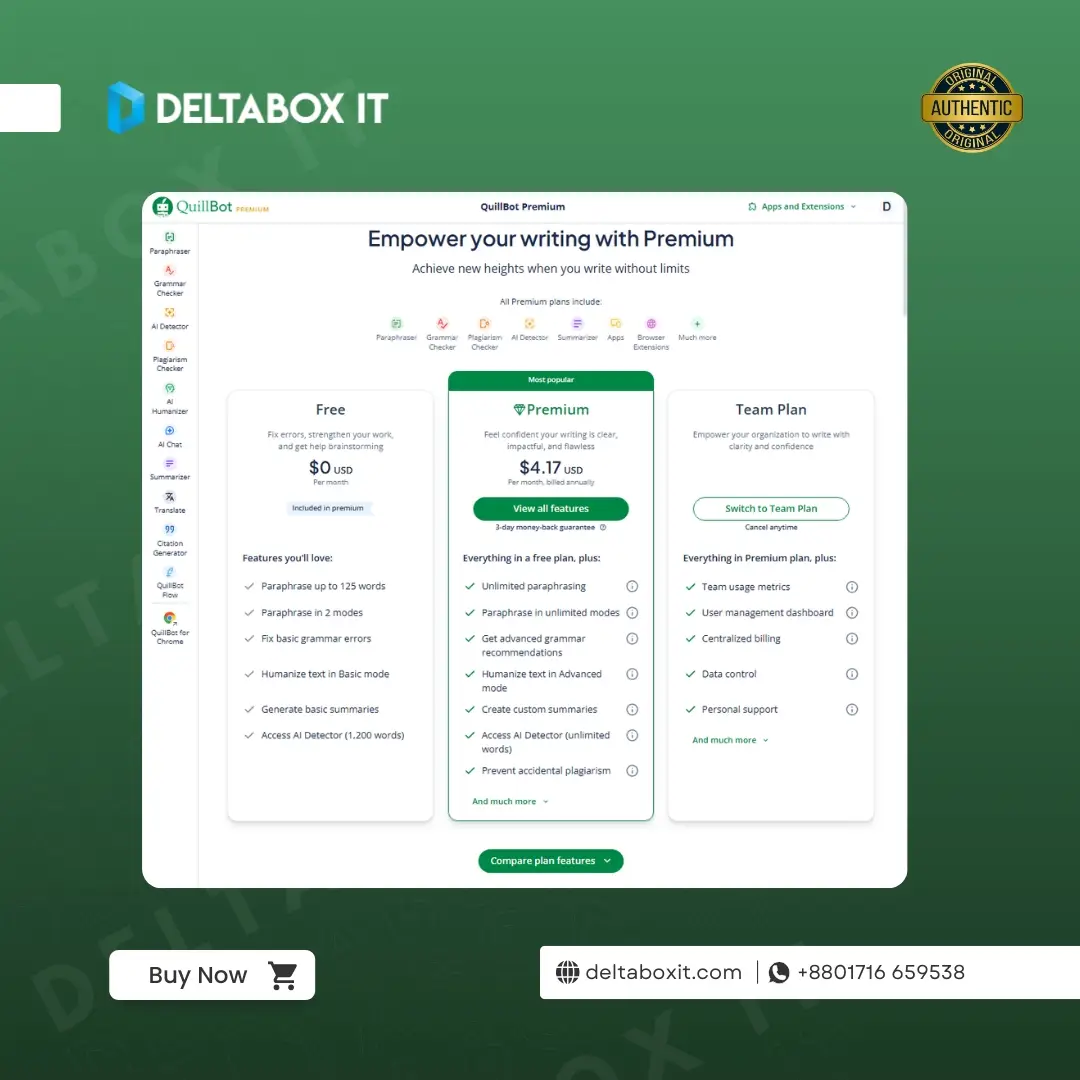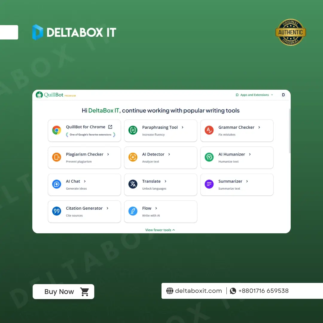 You can now get authentic Quillbot Premium at the best Quillbot price in BD, with warranty, support, and instant delivery by DeltaBox IT.